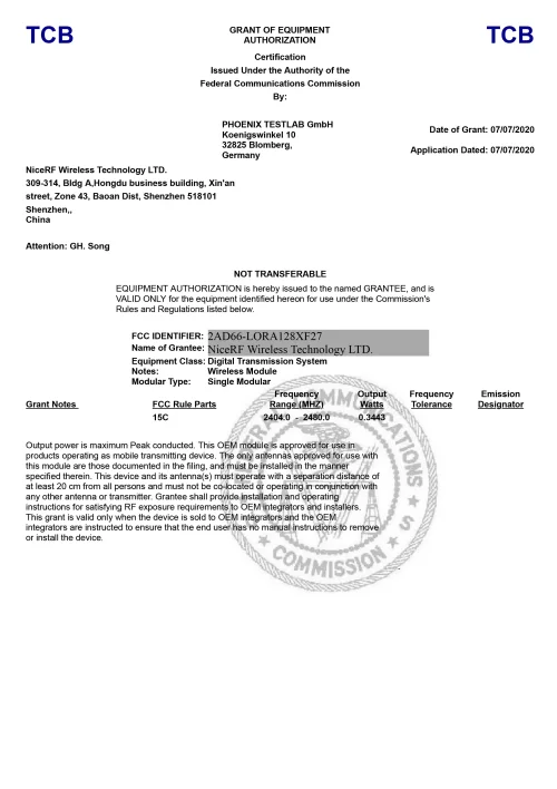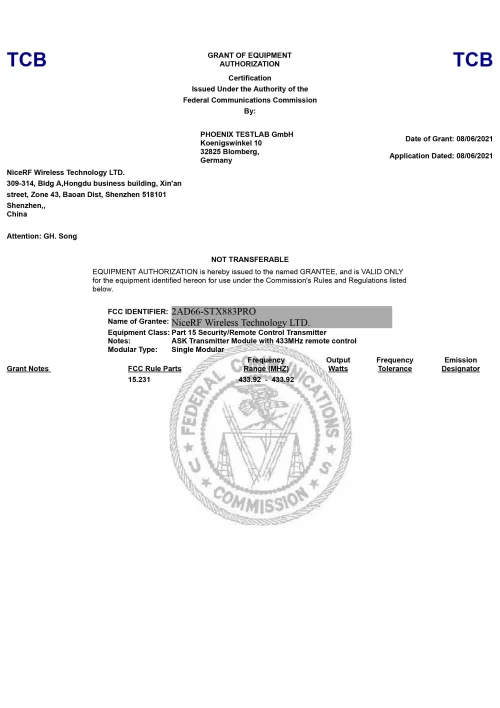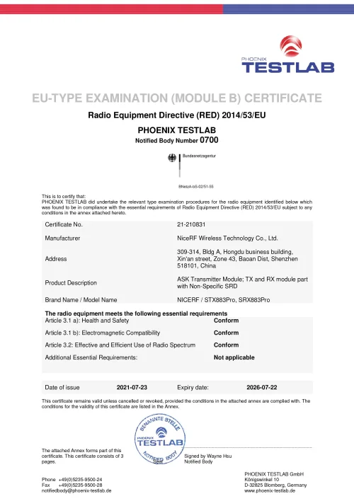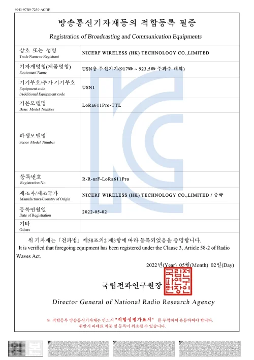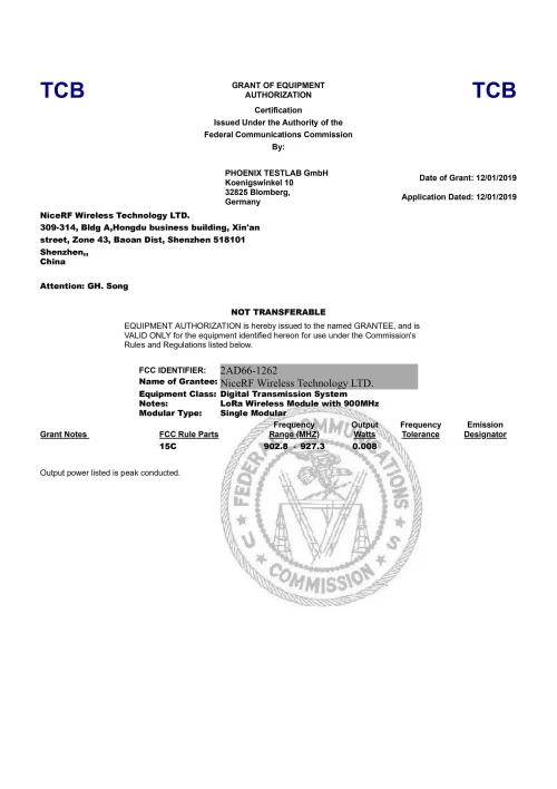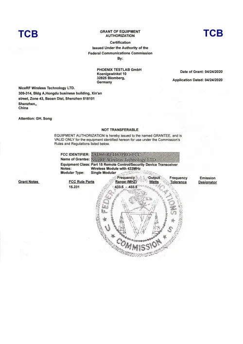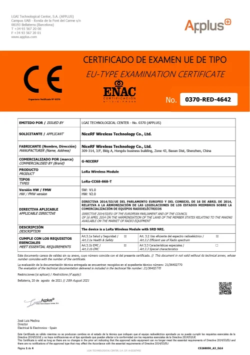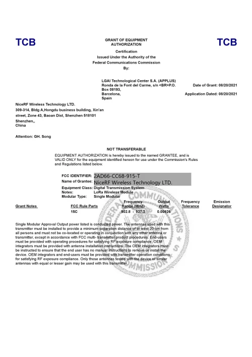 PRODUITS CERTIFIÉS-Certificats-NiceRF