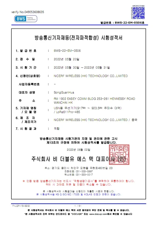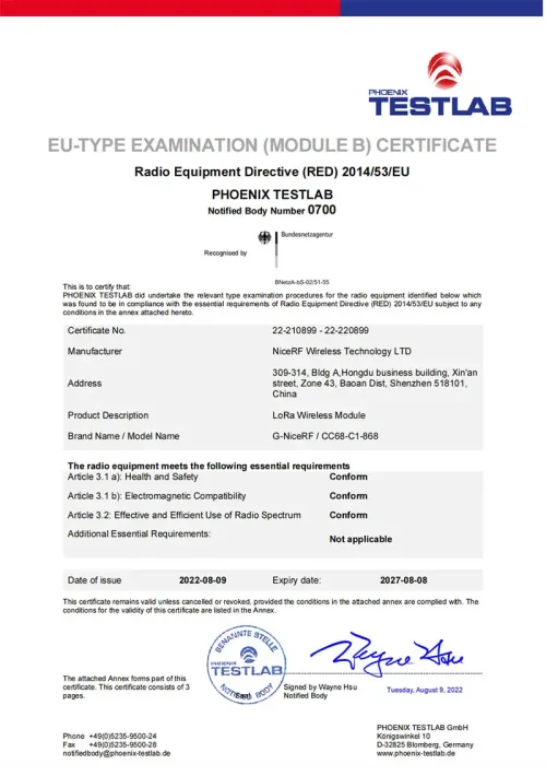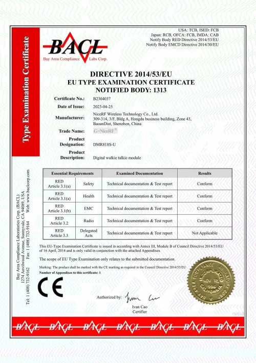 PRODUITS CERTIFIÉS-Certificats-NiceRF
