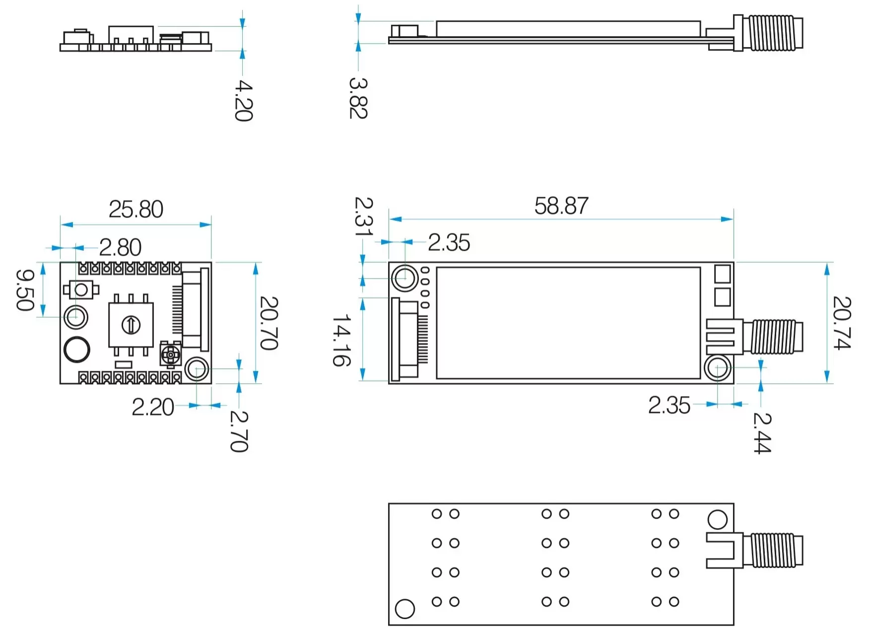 | 20 | FOURMI | Sortie de signal RF, connexion externe antenne 50oHm |