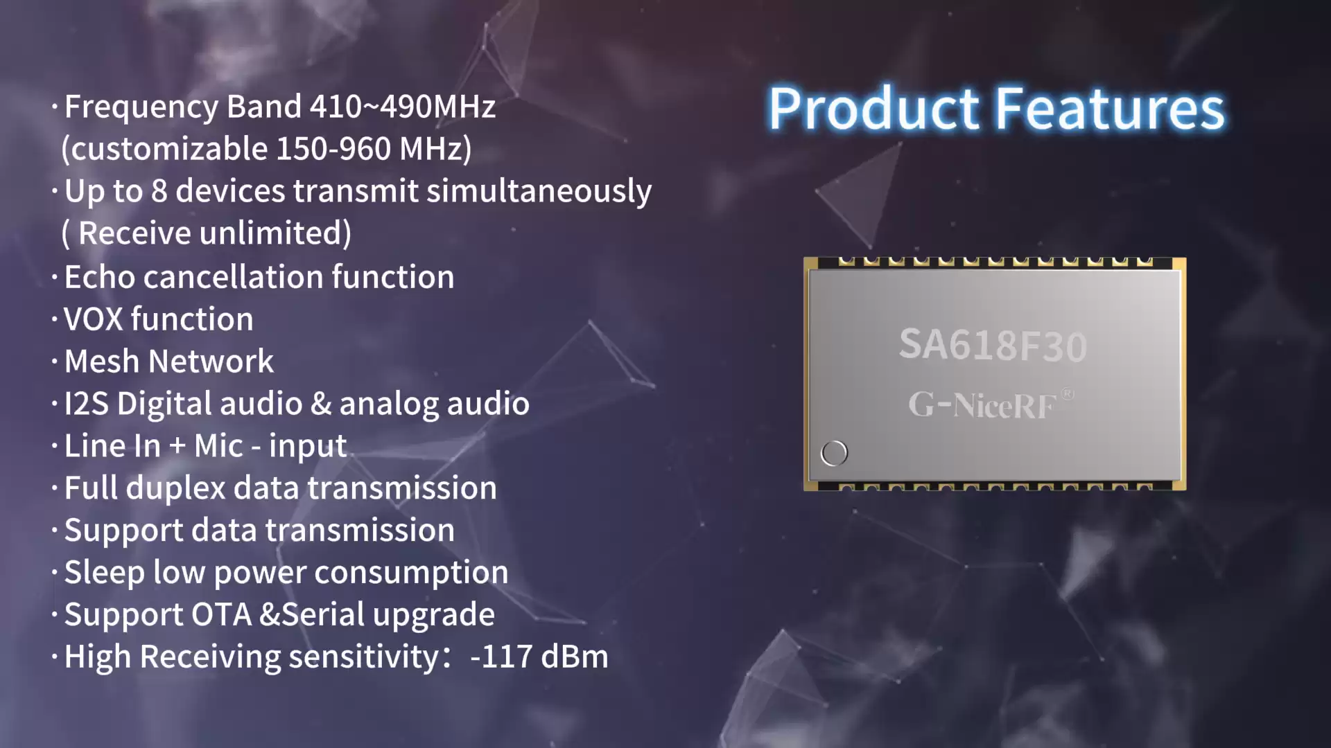 SA618F30-DZ : Module audio à relais multiniveaux double antenne 1 W, fréquence d'échantillonnage 8 K, duplex intégral avec protection ESD
